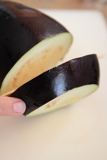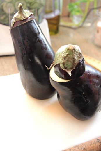 1. Choose shiny, pretty eggplant and chop away the ends.